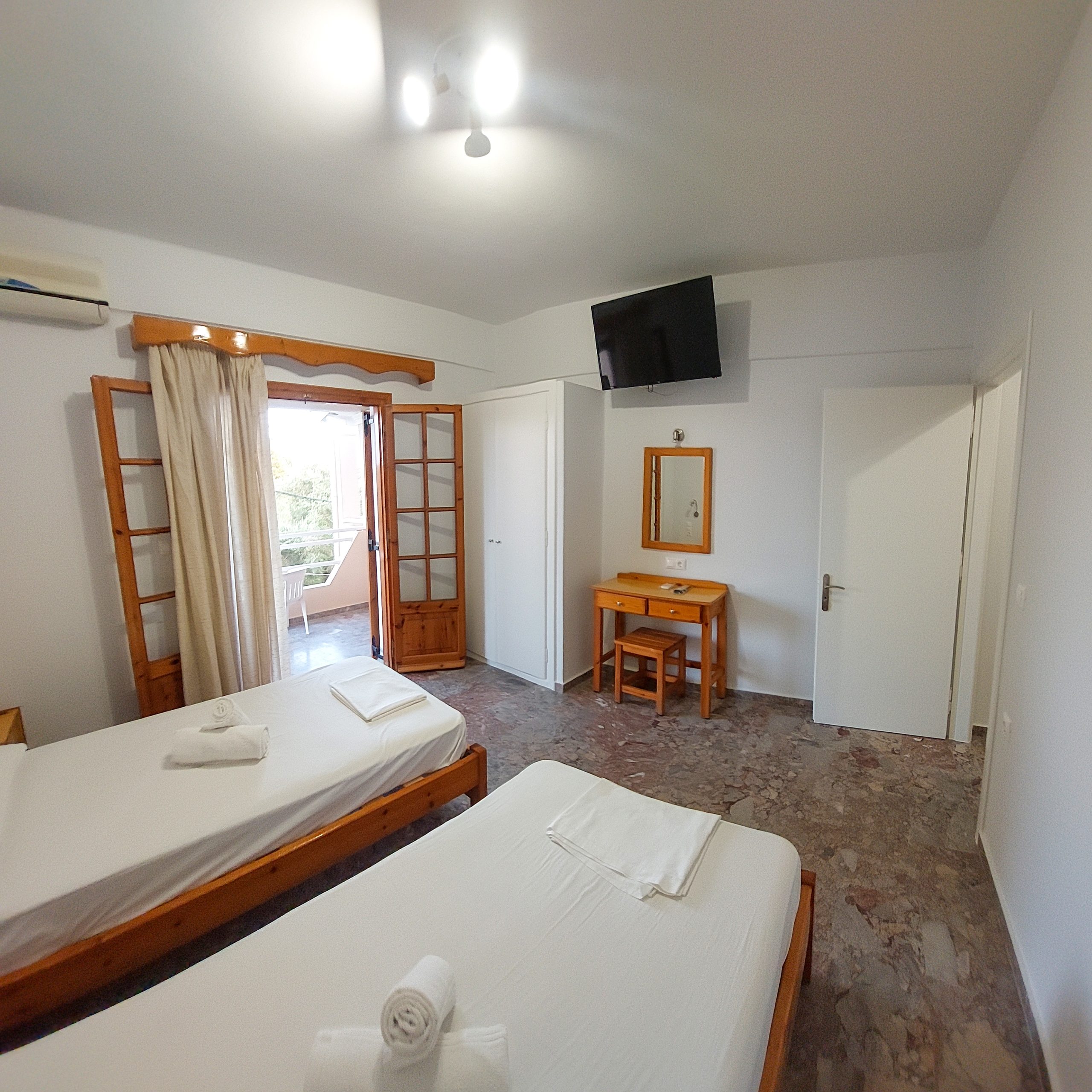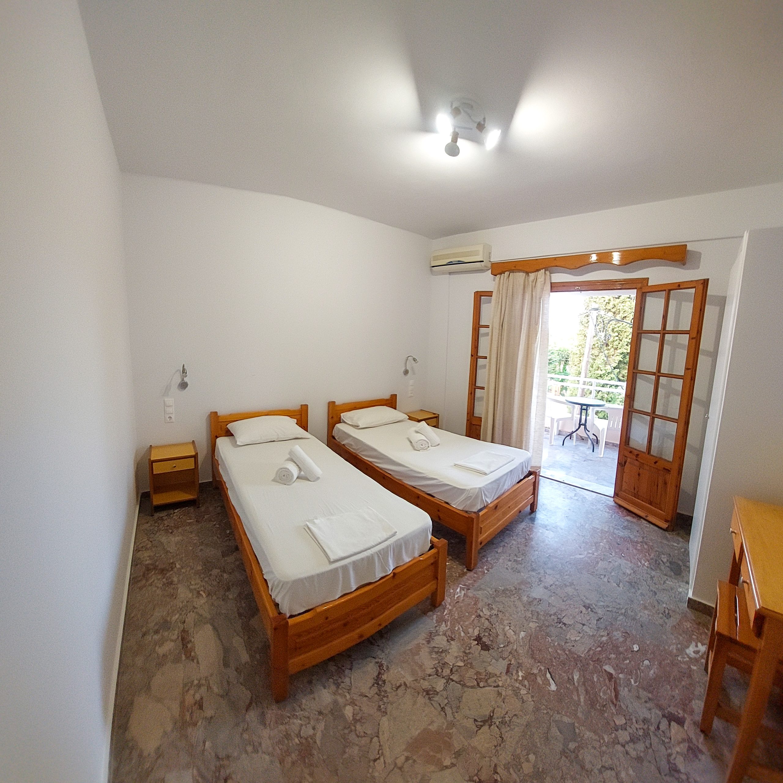 Ogni appartamento è splendidamente arredato e può ospitare fino a 4 persone, offrendo così un totale di 20 posti letto per grandi gruppi o famiglie. Ogni unità abitativa è dotata di bagno privato e cucina completamente attrezzata, offrendo la massima comodità e la libertà di preparare i pasti secondo i tuoi desideri. Potrai gustare i sapori locali cucinando i tuoi piatti preferiti o sperimentando la cucina greca direttamente nella tua residenza.